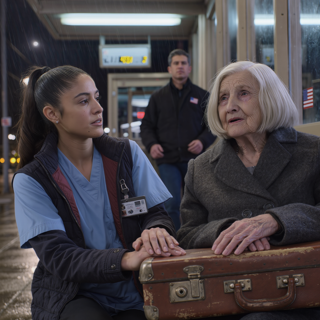 I looked up with tears making everything blurry, and saw a young woman kneeling in front of me. She looked about twenty-five, with warm brown eyes and black hair in a braid. She had blue hospital clothes under her jacket—maybe she was a nurse or a medical assistant.
